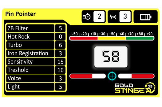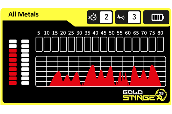 Gold Stinger X5 automatic ground balance feature is designed in automatic and easy-to-understand English so that a person who has never used a detector can use his professional detector in seconds to find buried targets.