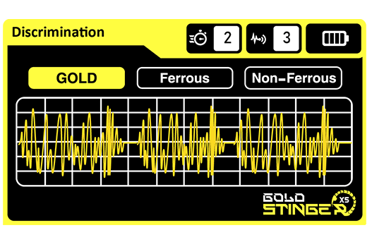 - – Discrimination Mode: The detection mode best used for gold prospecting and treasure detection